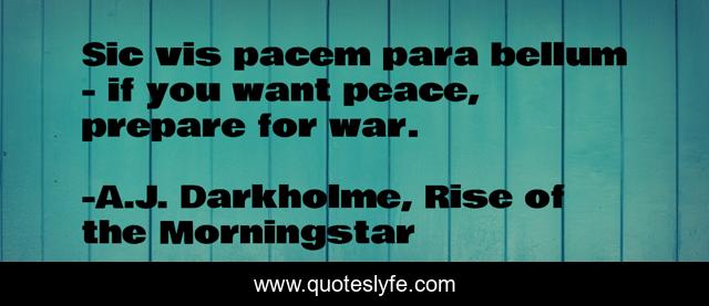"A.J. Darkholme, Rise of the Morningstar Quotes." Quoteslyfe.com, 2025. Mon. 08 Dec. 2025. <https://www.quoteslyfe.com/quote/Sic-vis-pacem-para-bellum-if-you-104688>.