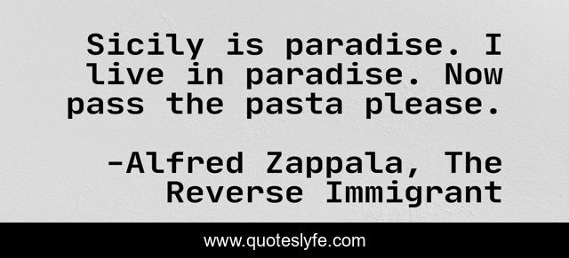 This page presents the quote "Sicily is paradise. I live in paradise. Now pass the pasta please.". Author of this quote is Alfred Zappala, The Reverse Immigrant. This quote is about travel, travel-writing, traveling,.