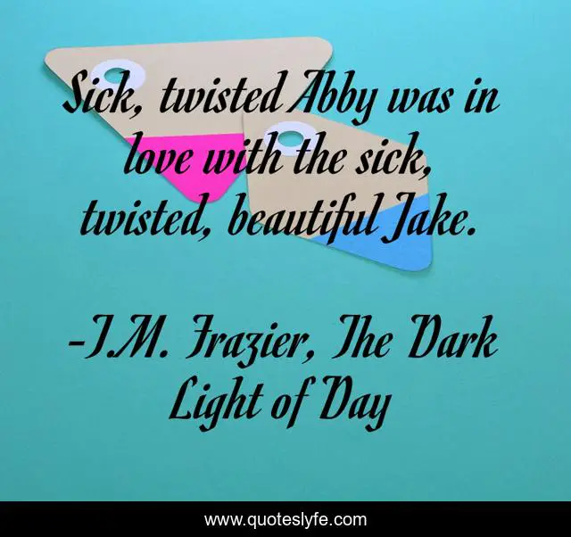 This page presents the quote "Sick, twisted Abby was in love with the sick, twisted, beautiful Jake.". Author of this quote is T.M. Frazier, The Dark Light of Day. This quote is about new-adult, dark-fiction,.