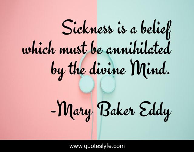 This page presents the quote "Sickness is a belief which must be annihilated by the divine Mind.". Author of this quote is Mary Baker Eddy. .
