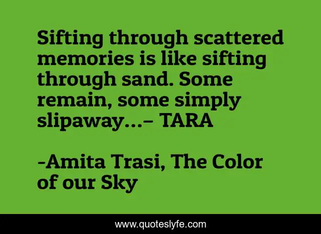 "Amita Trasi, The Color of our Sky Quotes." Quoteslyfe.com, 2025. Fri. 05 Dec. 2025. <https://www.quoteslyfe.com/quote/Sifting-through-scattered-memories-is-like-sifting-217552>.