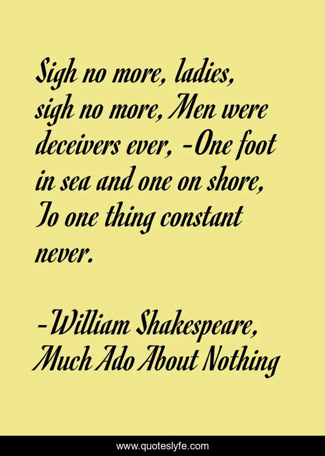 "William Shakespeare, Much Ado About Nothing Quotes." Quoteslyfe.com, 2025. Mon. 08 Dec. 2025. <https://www.quoteslyfe.com/quote/Sigh-no-more-ladies-sigh-no-more-121514>.