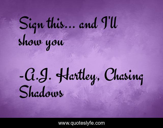 "A.J. Hartley, Chasing Shadows Quotes." Quoteslyfe.com, 2025. Fri. 05 Dec. 2025. <https://www.quoteslyfe.com/quote/Sign-this-and-I-ll-show-you-246657>.