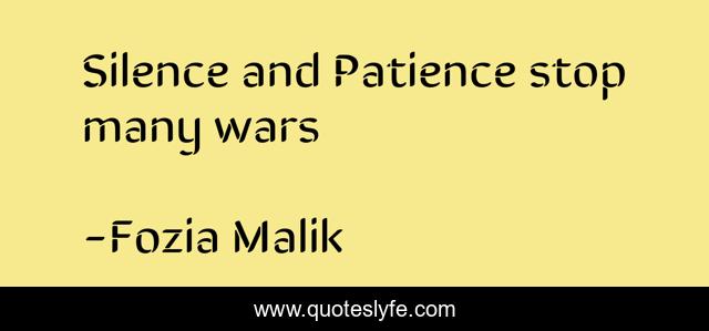 "Fozia Malik Quotes." Quoteslyfe.com, 2025. Sat. 06 Dec. 2025. <https://www.quoteslyfe.com/quote/Silence-and-Patience-stop-many-wars-192989>.