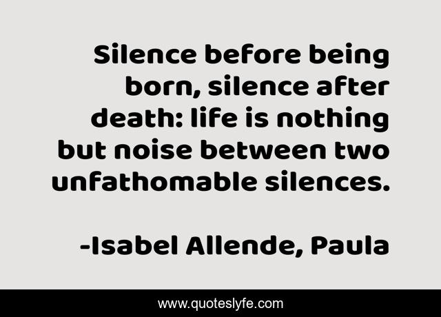 "Isabel Allende, Paula Quotes." Quoteslyfe.com, 2025. Mon. 08 Dec. 2025. <https://www.quoteslyfe.com/quote/Silence-before-being-born-silence-after-death-3535>.
