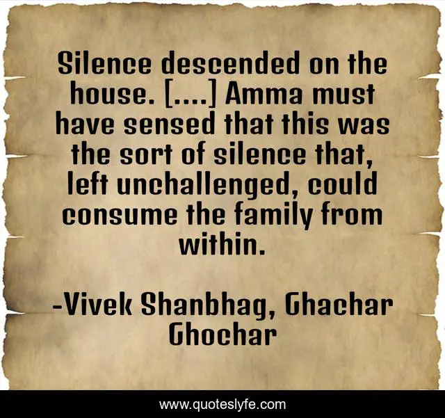 "Vivek Shanbhag, Ghachar Ghochar Quotes." Quoteslyfe.com, 2025. Sat. 06 Dec. 2025. <https://www.quoteslyfe.com/quote/Silence-descended-on-the-house-Amma-must-86060>.