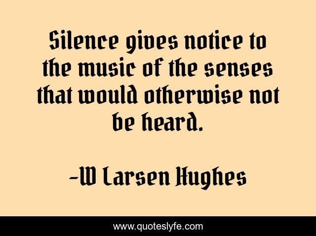 This page presents the quote "Silence gives notice to the music of the senses that would otherwise not be heard.". Author of this quote is W Larsen Hughes. .