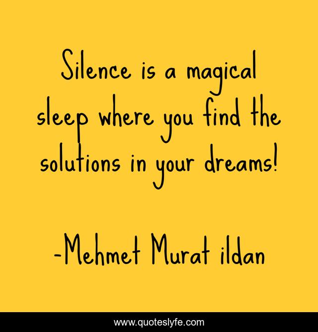 This page presents the quote "Silence is a magical sleep where you find the solutions in your dreams!". Author of this quote is Mehmet Murat ildan. This quote is about turkish-aphorisms, mehmet-murat-ildan, ildan-wise-sayings, turkish, ildan-wisdom, turkish-sayings, turkish-playwrights, magical, turkish-wisdom-words,.