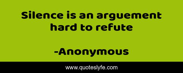 "Anonymous Quotes." Quoteslyfe.com, 2025. Fri. 05 Dec. 2025. <https://www.quoteslyfe.com/quote/Silence-is-an-arguement-hard-to-refute-168890>.