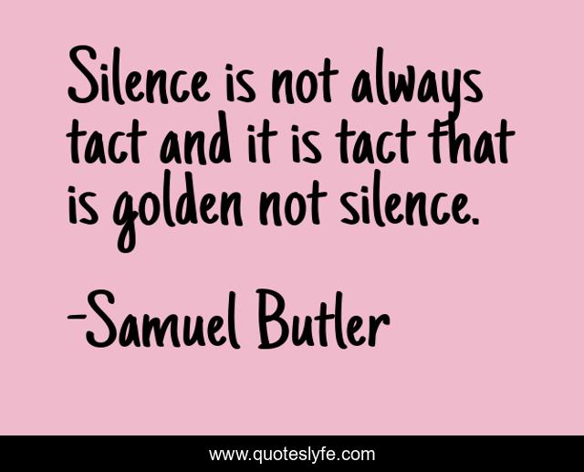 This page presents the quote "Silence is not always tact and it is tact that is golden not silence.". Author of this quote is Samuel Butler. This quote is about tact, diplomacy,.