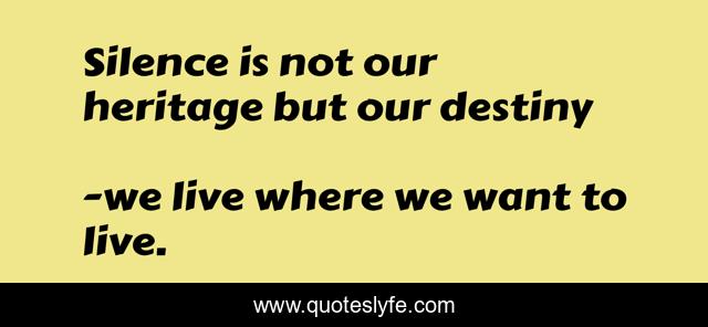 "we live where we want to live. Quotes." Quoteslyfe.com, 2025. Mon. 08 Dec. 2025. <https://www.quoteslyfe.com/quote/Silence-is-not-our-heritage-but-our-106849>.