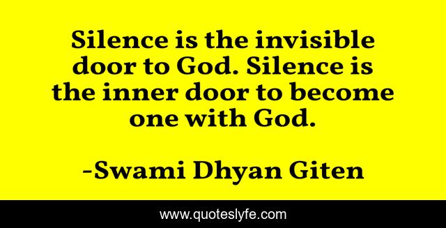 This page presents the quote "Silence is the invisible door to God. Silence is the inner door to become one with God.". Author of this quote is Swami Dhyan Giten. This quote is about god, meditation, awareness, silence, spirituality,.