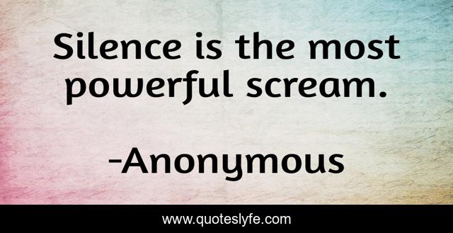 This page presents the quote "Silence is the most powerful scream.". Author of this quote is Anonymous. This quote is about powerful, scream, silence,.
