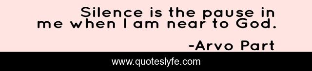 This page presents the quote "Silence is the pause in me when I am near to God.". Author of this quote is Arvo Part. This quote is about me, silence,.