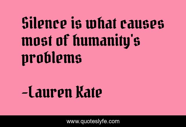 "Lauren Kate Quotes." Quoteslyfe.com, 2025. Sat. 06 Dec. 2025. <https://www.quoteslyfe.com/quote/Silence-is-what-causes-most-of-humanity-102998>.