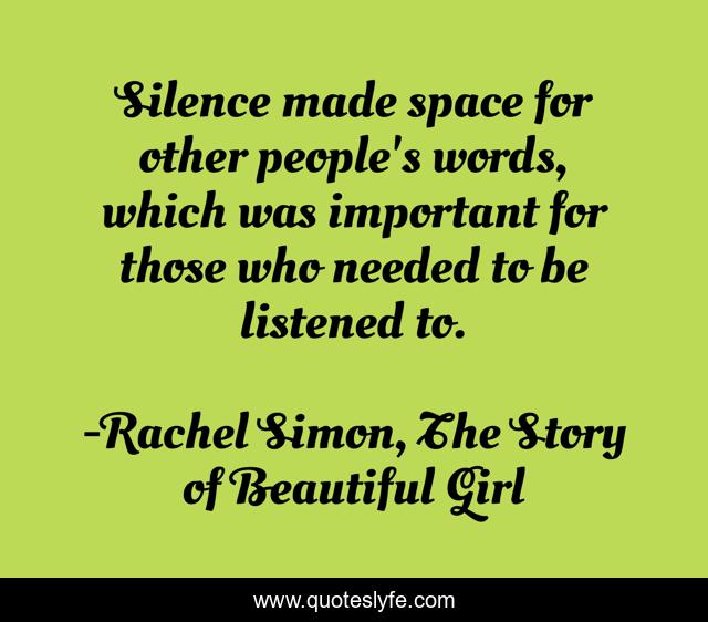 "Rachel Simon, The Story of Beautiful Girl Quotes." Quoteslyfe.com, 2025. Mon. 08 Dec. 2025. <https://www.quoteslyfe.com/quote/Silence-made-space-for-other-people-s-113512>.