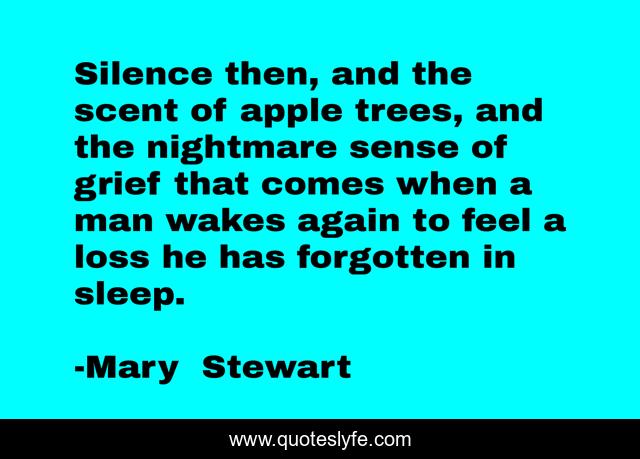 This page presents the quote "Silence then, and the scent of apple trees, and the nightmare sense of grief that comes when a man wakes again to feel a loss he has forgotten in sleep.". Author of this quote is Mary Stewart. This quote is about grief, loss, sleep, arthurian,.
