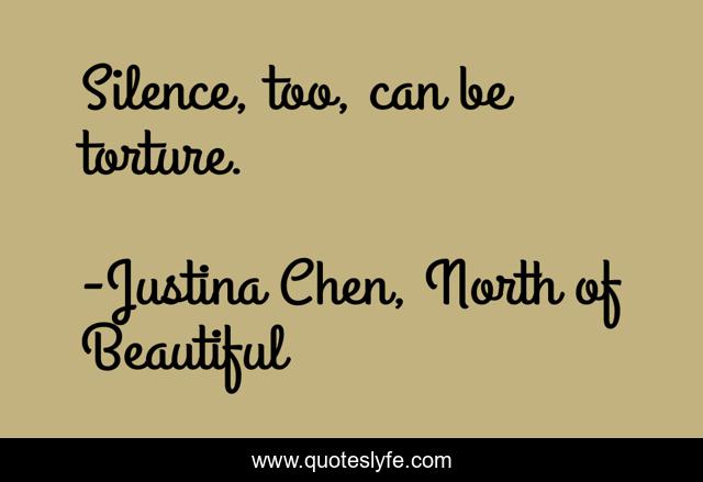 "Justina Chen, North of Beautiful Quotes." Quoteslyfe.com, 2025. Sat. 06 Dec. 2025. <https://www.quoteslyfe.com/quote/Silence-too-can-be-torture-168490>.