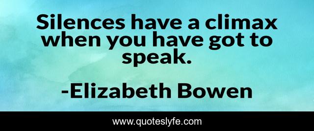 This page presents the quote "Silences have a climax when you have got to speak.". Author of this quote is Elizabeth Bowen. This quote is about going, getting,.