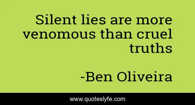 "Ben Oliveira Quotes." Quoteslyfe.com, 2025. Sat. 06 Dec. 2025. <https://www.quoteslyfe.com/quote/Silent-lies-are-more-venomous-than-cruel-63046>.