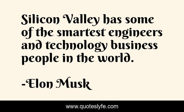 This page presents the quote "Silicon Valley has some of the smartest engineers and technology business people in the world.". Author of this quote is Elon Musk. This quote is about world, technology, people,.