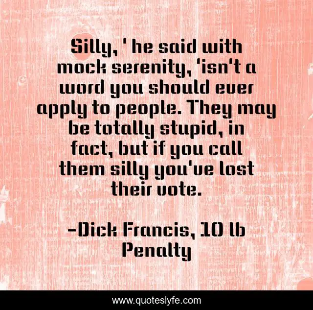 "Dick Francis, 10 lb Penalty Quotes." Quoteslyfe.com, 2025. Fri. 05 Dec. 2025. <https://www.quoteslyfe.com/quote/Silly-he-said-with-mock-serenity-isn-233795>.