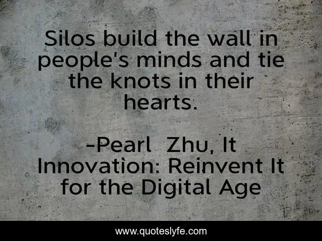 This page presents the quote "Silos build the wall in people’s minds and tie the knots in their hearts.". Author of this quote is Pearl Zhu, It Innovation: Reinvent It for the Digital Age. This quote is about it-innovation, innovation, silos,.