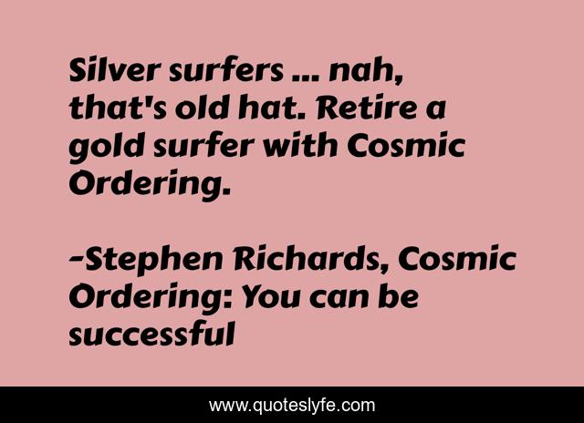 "Stephen Richards, Cosmic Ordering: You can be successful Quotes." Quoteslyfe.com, 2025. Sat. 06 Dec. 2025. <https://www.quoteslyfe.com/quote/Silver-surfers-nah-that-s-old-hat-16912>.