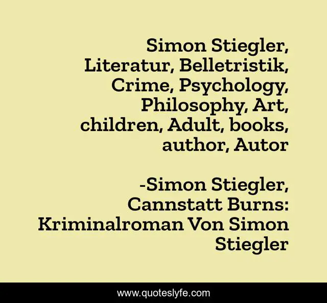 This page presents the quote "Simon Stiegler, Literatur, Belletristik, Crime, Psychology, Philosophy, Art, children, Adult, books, author, Autor". Author of this quote is Simon Stiegler, Cannstatt Burns: Kriminalroman Von Simon Stiegler. This quote is about art, psychology, author, philosophy, literatur, belletristik, crime, autor, simon-stiegler,.