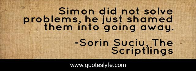 "Sorin Suciu, The Scriptlings Quotes." Quoteslyfe.com, 2025. Fri. 05 Dec. 2025. <https://www.quoteslyfe.com/quote/Simon-did-not-solve-problems-he-just-213495>.