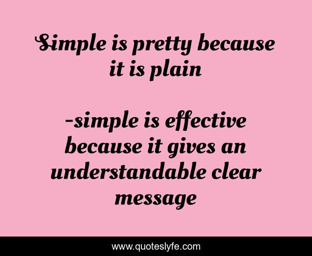 "simple is effective because it gives an understandable clear message Quotes." Quoteslyfe.com, 2025. Fri. 05 Dec. 2025. <https://www.quoteslyfe.com/quote/Simple-is-pretty-because-it-is-plain-212987>.