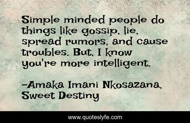 "Amaka Imani Nkosazana, Sweet Destiny Quotes." Quoteslyfe.com, 2025. Tue. 09 Dec. 2025. <https://www.quoteslyfe.com/quote/Simple-minded-people-do-things-like-gossip-89824>.