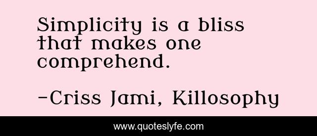 "Criss Jami, Killosophy Quotes." Quoteslyfe.com, 2025. Fri. 05 Dec. 2025. <https://www.quoteslyfe.com/quote/Simplicity-is-a-bliss-that-makes-one-156614>.