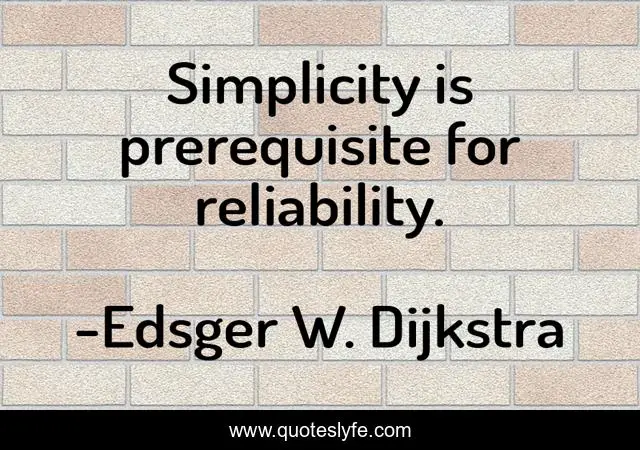 This page presents the quote "Simplicity is prerequisite for reliability.". Author of this quote is Edsger W. Dijkstra. This quote is about simplicity, reliability, programming,.