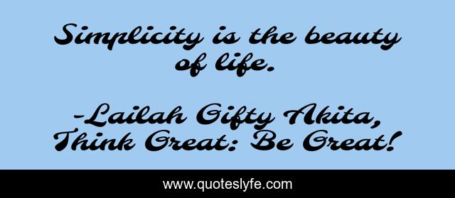 "Lailah Gifty Akita, Think Great: Be Great! Quotes." Quoteslyfe.com, 2025. Sat. 06 Dec. 2025. <https://www.quoteslyfe.com/quote/Simplicity-is-the-beauty-of-life-172909>.