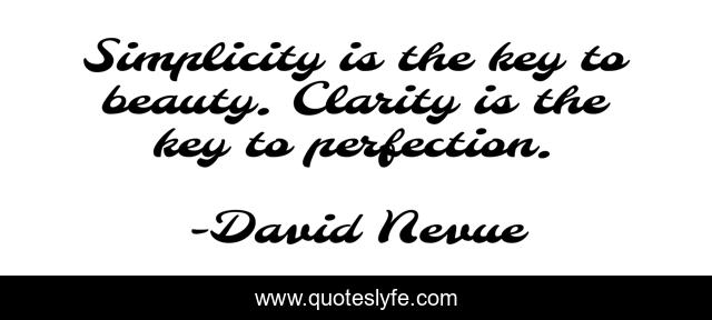 This page presents the quote "Simplicity is the key to beauty. Clarity is the key to perfection.". Author of this quote is David Nevue. This quote is about simplicity, inspirational, enthusiasm,.