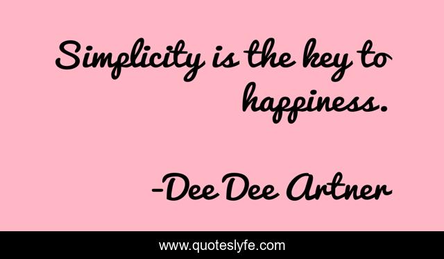 "Dee Dee Artner Quotes." Quoteslyfe.com, 2025. Sun. 07 Dec. 2025. <https://www.quoteslyfe.com/quote/Simplicity-is-the-key-to-happiness-192333>.