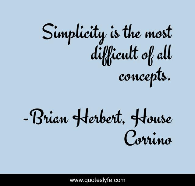 This page presents the quote "Simplicity is the most difficult of all concepts.". Author of this quote is Brian Herbert, House Corrino. .