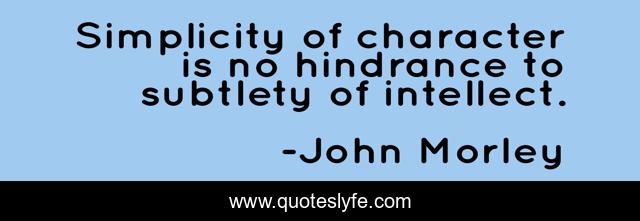 This page presents the quote "Simplicity of character is no hindrance to subtlety of intellect.". Author of this quote is John Morley. .