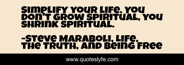 This page presents the quote "Simplify your life. You don't grow spiritual, you shrink spiritual.". Author of this quote is Steve Maraboli, Life, the Truth, and Being Free. This quote is about simplicity, life, spiritual-growth, letting-go, positive, motivational, confidence, optimistic, inspirational,.
