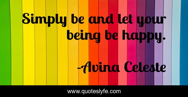 This page presents the quote "Simply be and let your being be happy.". Author of this quote is Avina Celeste. This quote is about confidence, being, positive, motivational, optimistic, inspirational, enthusiasm,.