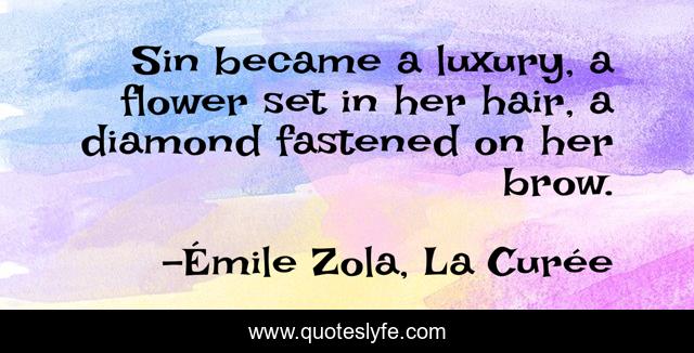 This page presents the quote "Sin became a luxury, a flower set in her hair, a diamond fastened on her brow.". Author of this quote is Émile Zola, La Curée. .