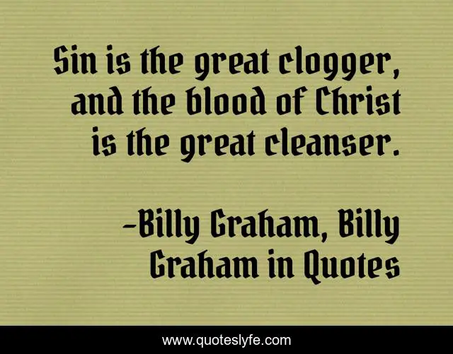 This page presents the quote "Sin is the great clogger, and the blood of Christ is the great cleanser.". Author of this quote is Billy Graham, Billy Graham in Quotes. This quote is about billy-graham, cleanser, sin, blood-of-christ,.
