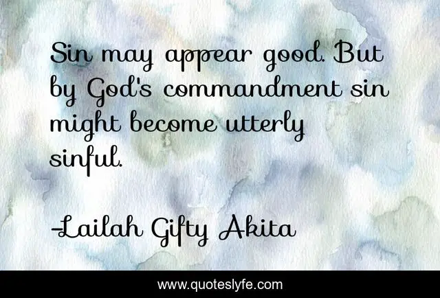 This page presents the quote "Sin may appear good. But by God's commandment sin might become utterly sinful.". Author of this quote is Lailah Gifty Akita. This quote is about christian, god-s-commandments, sinful, repentance, christianity, self-help, theology, saved-from-sin,.