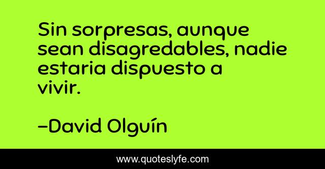 "David Olguín Quotes." Quoteslyfe.com, 2025. Mon. 08 Dec. 2025. <https://www.quoteslyfe.com/quote/Sin-sorpresas-aunque-sean-disagredables-nadie-estaria-3574>.