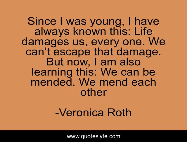 This page presents the quote "Since I was young, I have always known this: Life damages us, every one. We can’t escape that damage. But now, I am also learning this: We can be mended. We mend each other". Author of this quote is Veronica Roth. This quote is about enthusiasm, pain, hope, inspirational,.