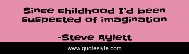 This page presents the quote "Since childhood I’d been suspected of imagination". Author of this quote is Steve Aylett. This quote is about humor, life, love, experience, affection,.