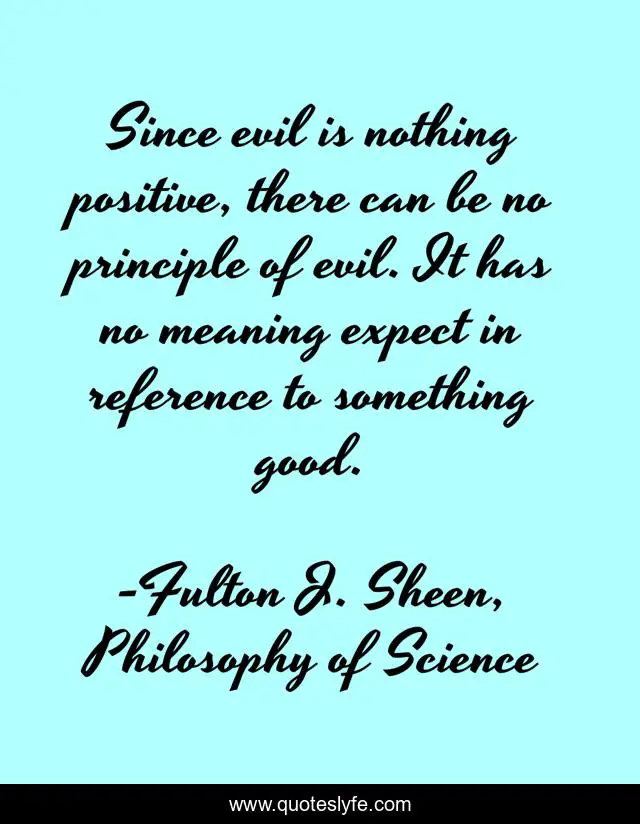 "Fulton J. Sheen, Philosophy of Science Quotes." Quoteslyfe.com, 2025. Fri. 05 Dec. 2025. <https://www.quoteslyfe.com/quote/Since-evil-is-nothing-positive-there-can-154511>.