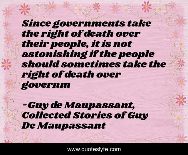 "Guy de Maupassant, Collected Stories of Guy De Maupassant Quotes." Quoteslyfe.com, 2025. Sat. 06 Dec. 2025. <https://www.quoteslyfe.com/quote/Since-governments-take-the-right-of-death-174313>.