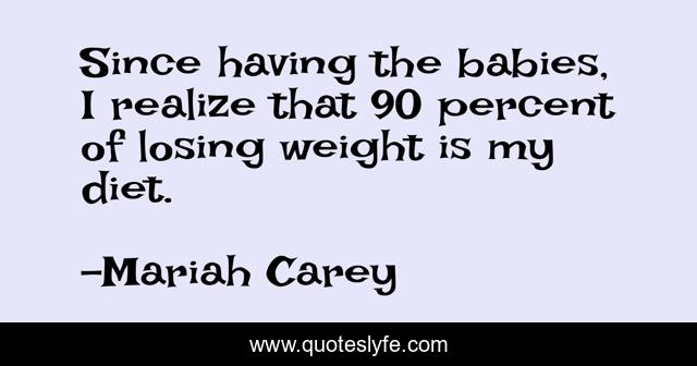 This page presents the quote "Since having the babies, I realize that 90 percent of losing weight is my diet.". Author of this quote is Mariah Carey. This quote is about losing, realize, weight,.